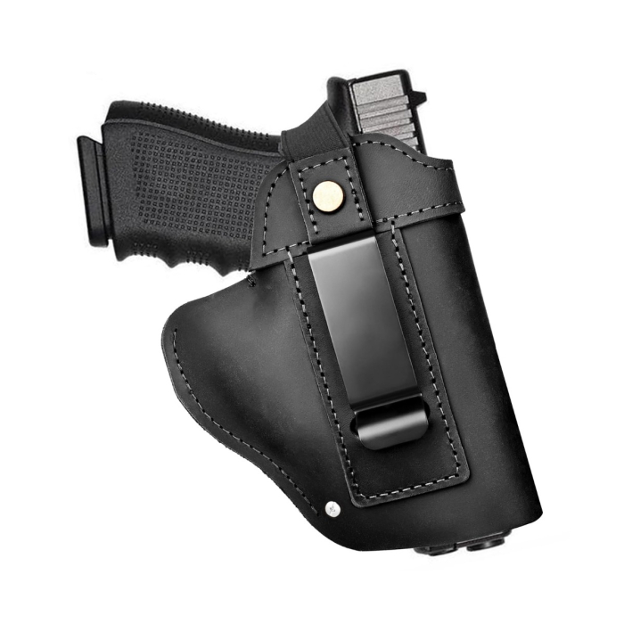 A universal leather holster is meant for the carrier who wants a dependable option without a full custom mold. This black leather IWB holster with metal clip is made from genuine cowhide and stitched for structure, giving you a stable platform for inside waistband carry with the option to run it outside the waistband depending on belt setup and clothing.