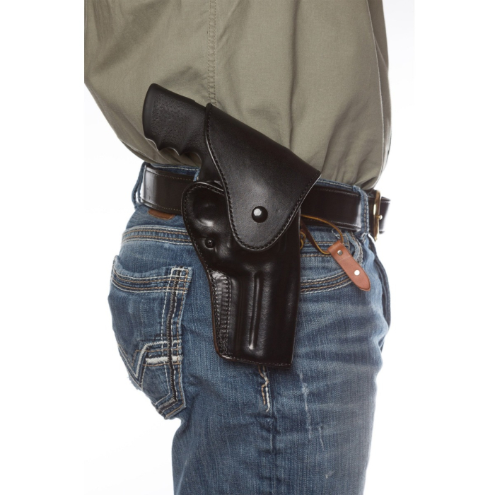 This OWB hip holster is commonly used for hunting, hiking, ranch work, and outdoor travel where layered clothing, backpacks, or gear can interfere with inside-the-waistband carry. The black leather finish provides a clean, traditional appearance suitable for both outdoor and everyday environments.