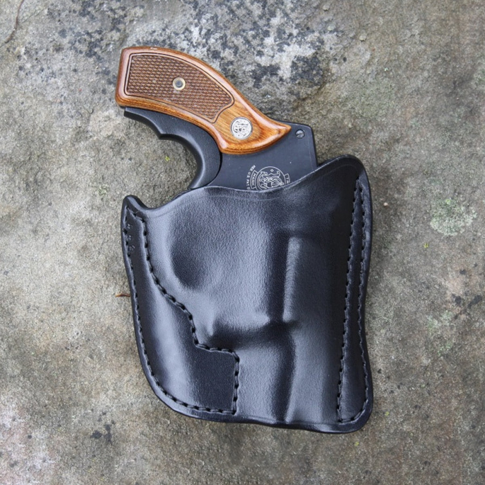 This is a leather pocket holster designed for concealed carry of small handguns. It is intended for pocket carry rather than belt or body-mounted use.