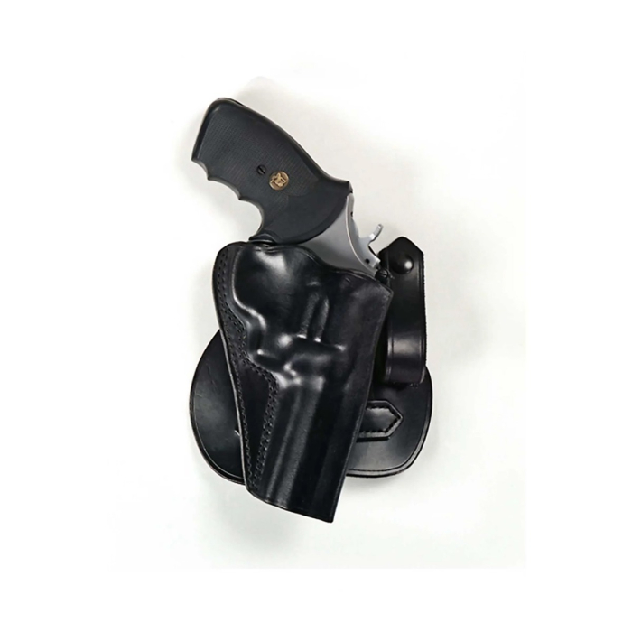 A paddle holster earns its place when you need speed and convenience without sacrificing stability. This black leather reinforced paddle holster is designed for strong side hip carry, with a high ride and a forward cant that helps conceal the grip line under a jacket while keeping the draw stroke natural.