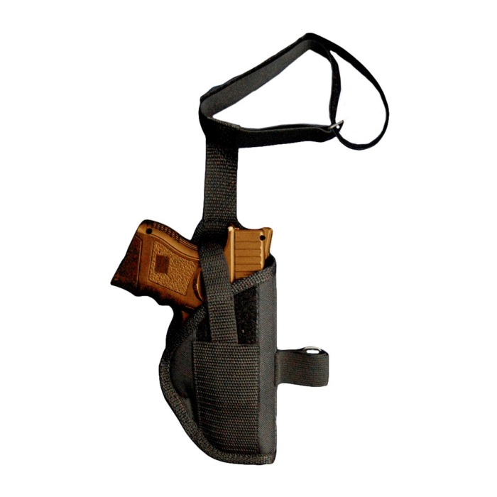 Ankle carry is often selected for deep concealment and for situations where waist carry can be uncomfortable or obstructed by seated movement, layered clothing, or field gear. This black nylon ankle holster is designed specifically for compact and sub-compact pistols, combining a wraparound ankle strap with an upper support strap to help reduce shifting during routine movement.