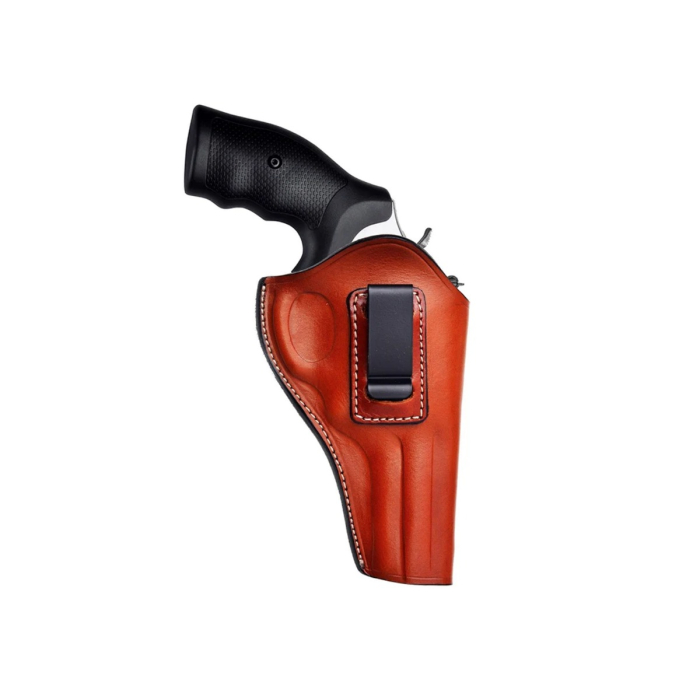 Brown Leather IWB Revolver Holster with Steel Clip