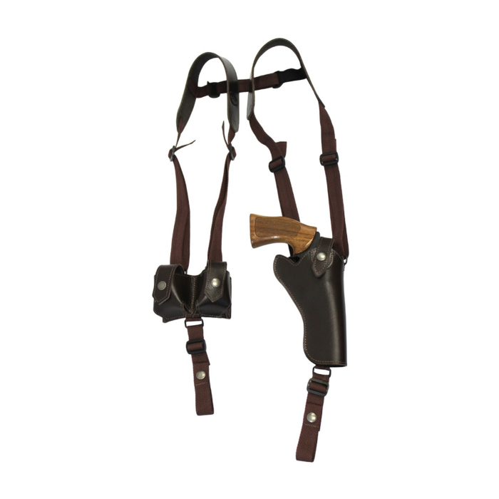 Brown Leather Vertical Shoulder Holster With Speedloader
