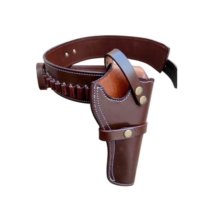 Brown Leather Western Revolver Holster With Cartridge Belt