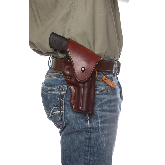 The belt-mounted design distributes weight comfortably, making this holster well suited for extended wear during hunting trips, ranch work, hiking, and general outdoor travel. Its OWB configuration also makes it compatible with layered clothing, backpacks, and gear belts where inside-the-waistband carry may be uncomfortable or impractical.