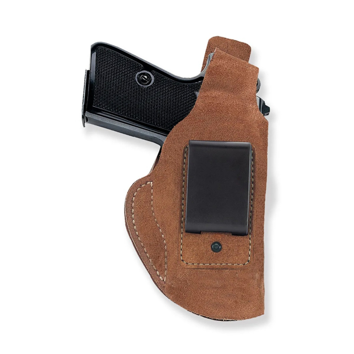 This leather IWB thumb break holster is built for concealed carry in a simple, proven format. Galco describes the Waistband model as an inside the pants holster that combines economy and function in a concealable package, and the design reflects that purpose well. It carries the handgun in a vertical orientation with no cant, which gives the user flexibility to place it in a traditional strong side position or forward of the hip depending on comfort and body type.