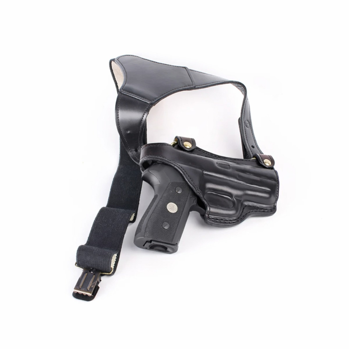 This leather shoulder holster is a single side concealed carry rig made for users who need a practical draw angle when belt carry is less convenient. It suits long hours behind the wheel, office wear, field movement with a cover garment, and any situation where a waistband holster can feel restrictive. The profile stays trim across the shoulder, and the tie down strap helps keep the holster anchored instead of swinging with movement.