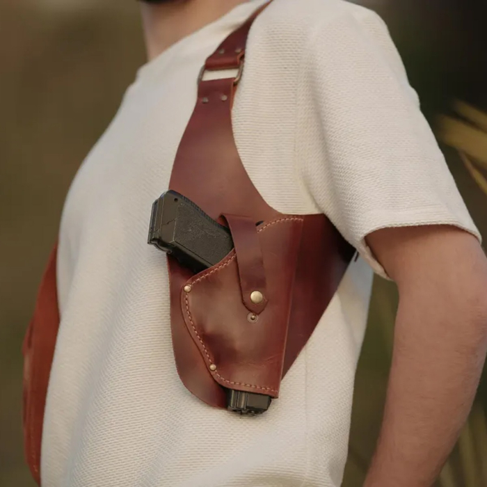 - 1 × Brown leather sling shoulder holster (single holster body)