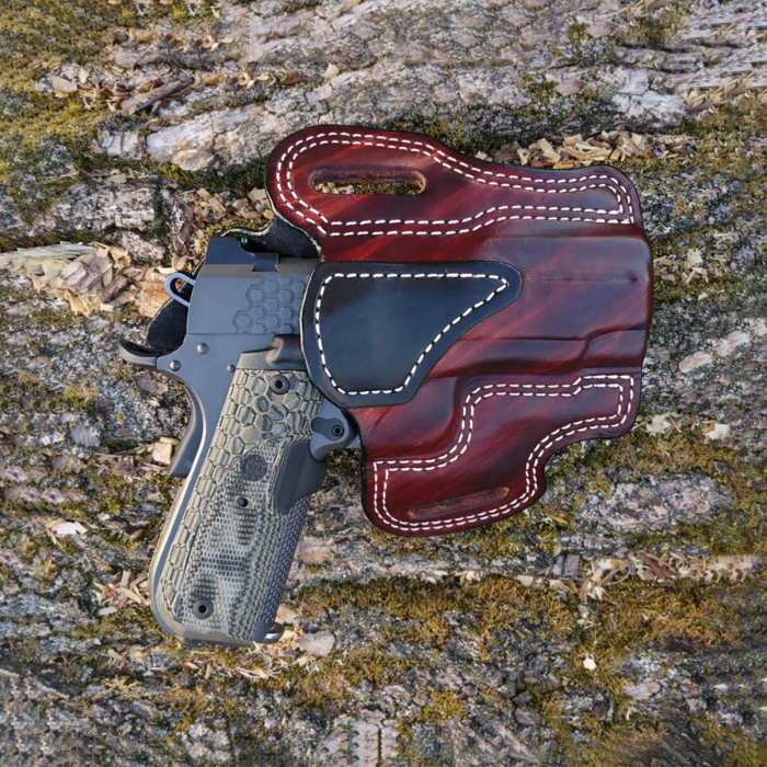- Outside-the-waistband leather holster design